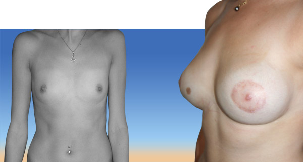 L'augmentation mammaire permet d'augmenter le volume des seins par l'ajout de prothèses. L'intervention consiste à introduire par une petite incision, une prothèse sous la glande mammaire ou le muscle pectoral. L'incision cutanée peut être faite dans le pli sous-mammaire, sur le pourtour de l'aréole du sein ou dans le creux de l'aisselle.